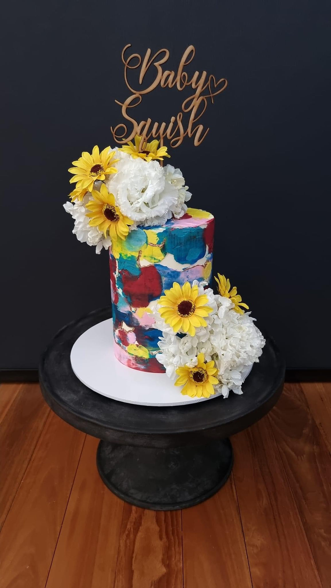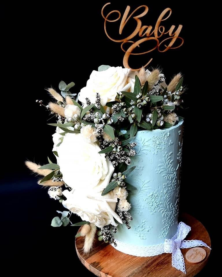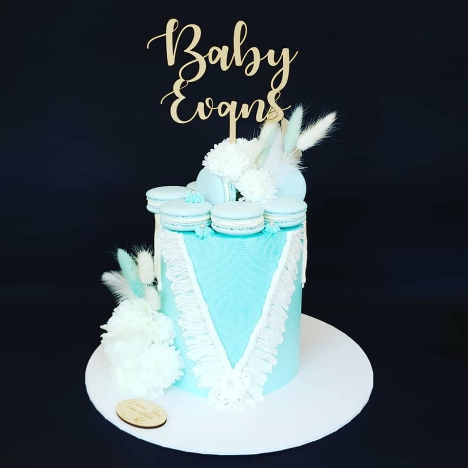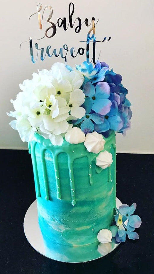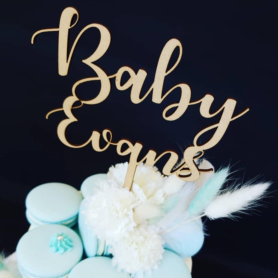 Personalised Baby + Surname Cake Toppers are 15cm wide and the stem is 15cm long. If you require the stem to be longer it is an additional $1 per cm and you will need to advise by message.