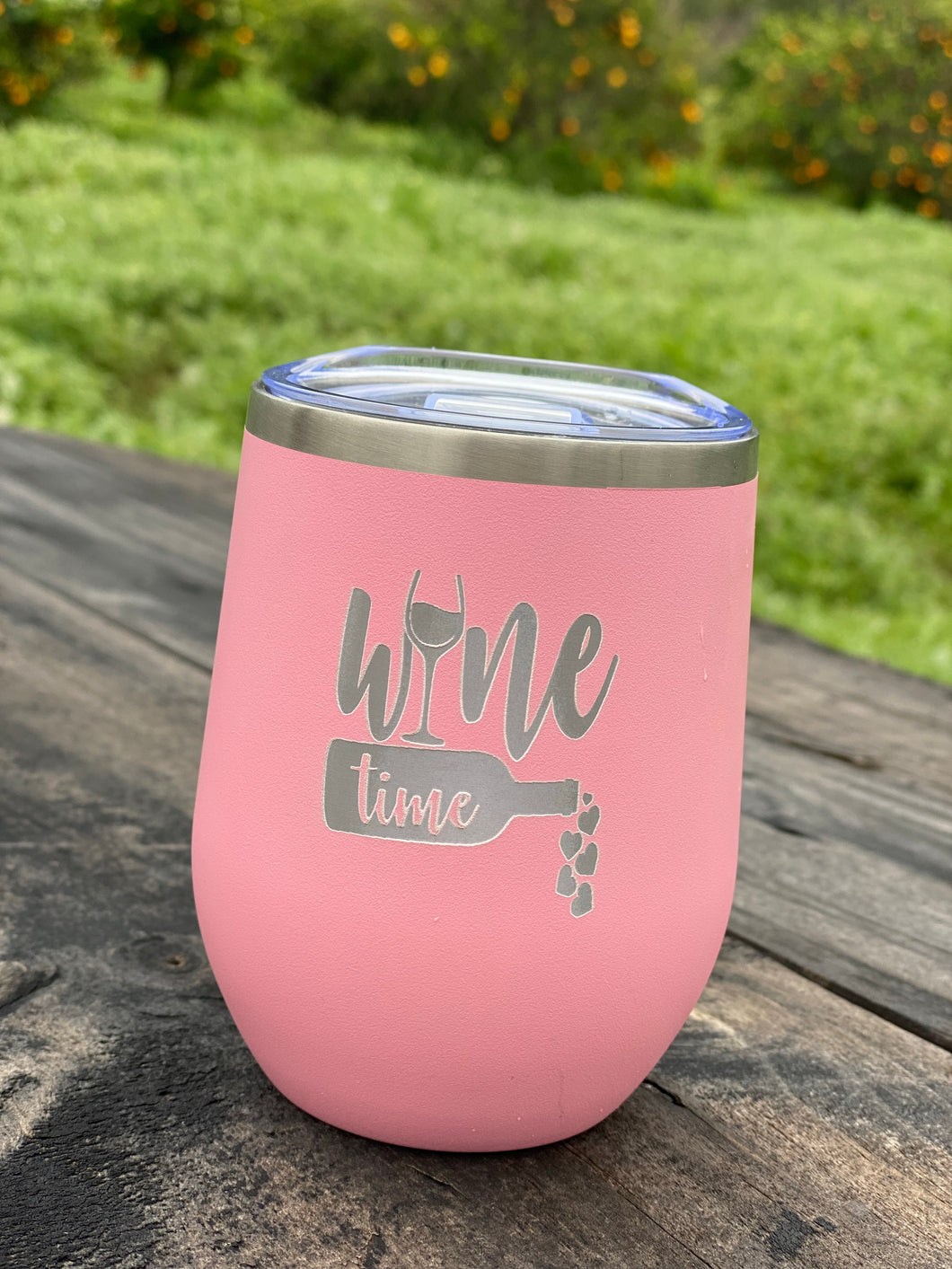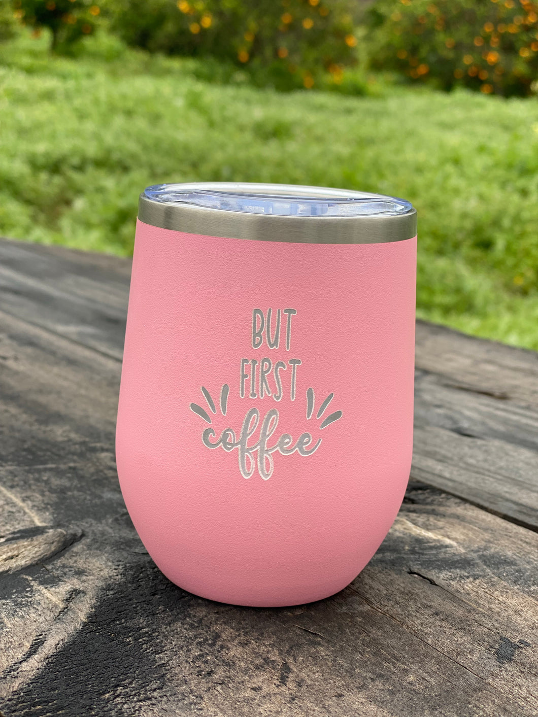 Doubled Sided Text!!! Wine Time on one side, but first coffee on the other!!! 12oz insulated tumblers!