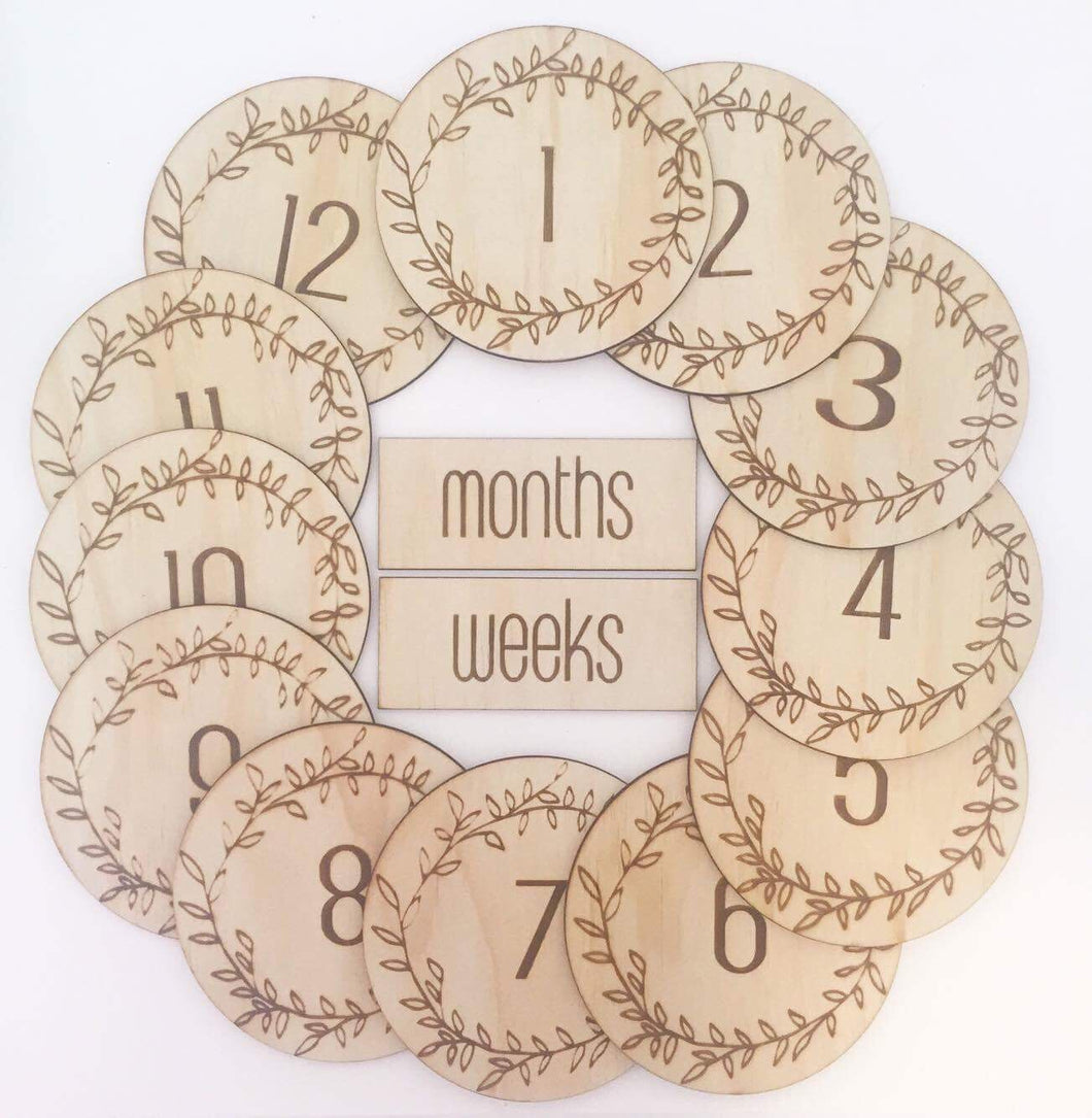 The set includes 1-12 numbers and a 'week' and 'month' rectangle. This will cover 1-12 weeks or 1-12 months for your child.