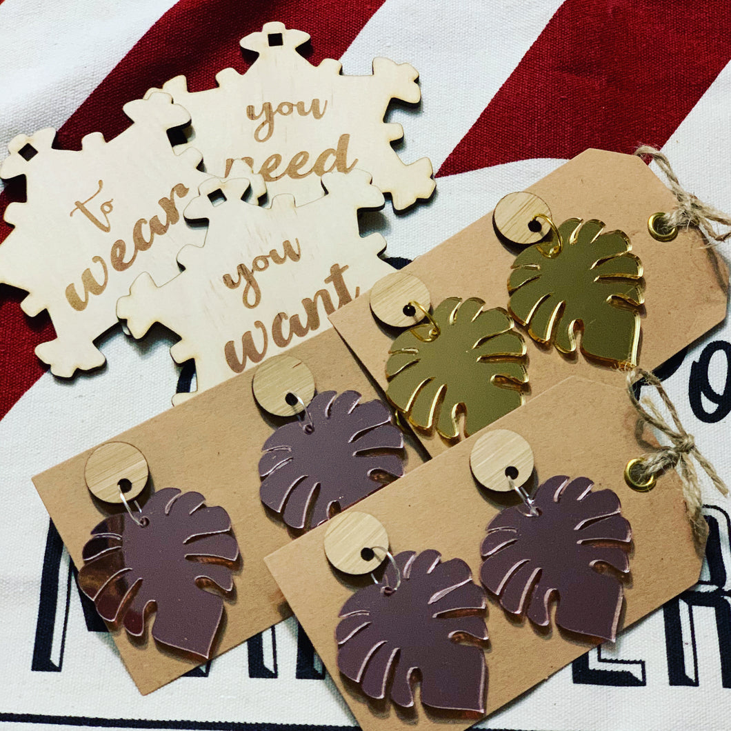Large Monstera Leaf Earrings