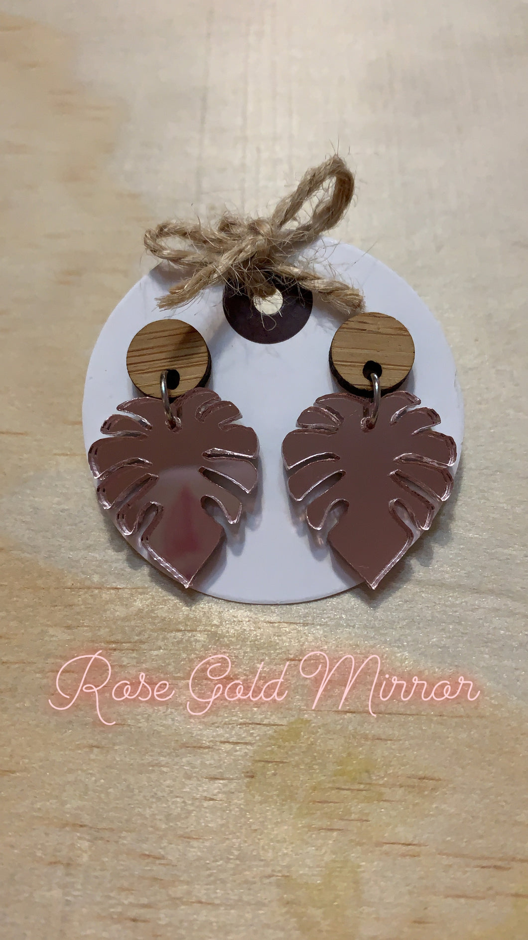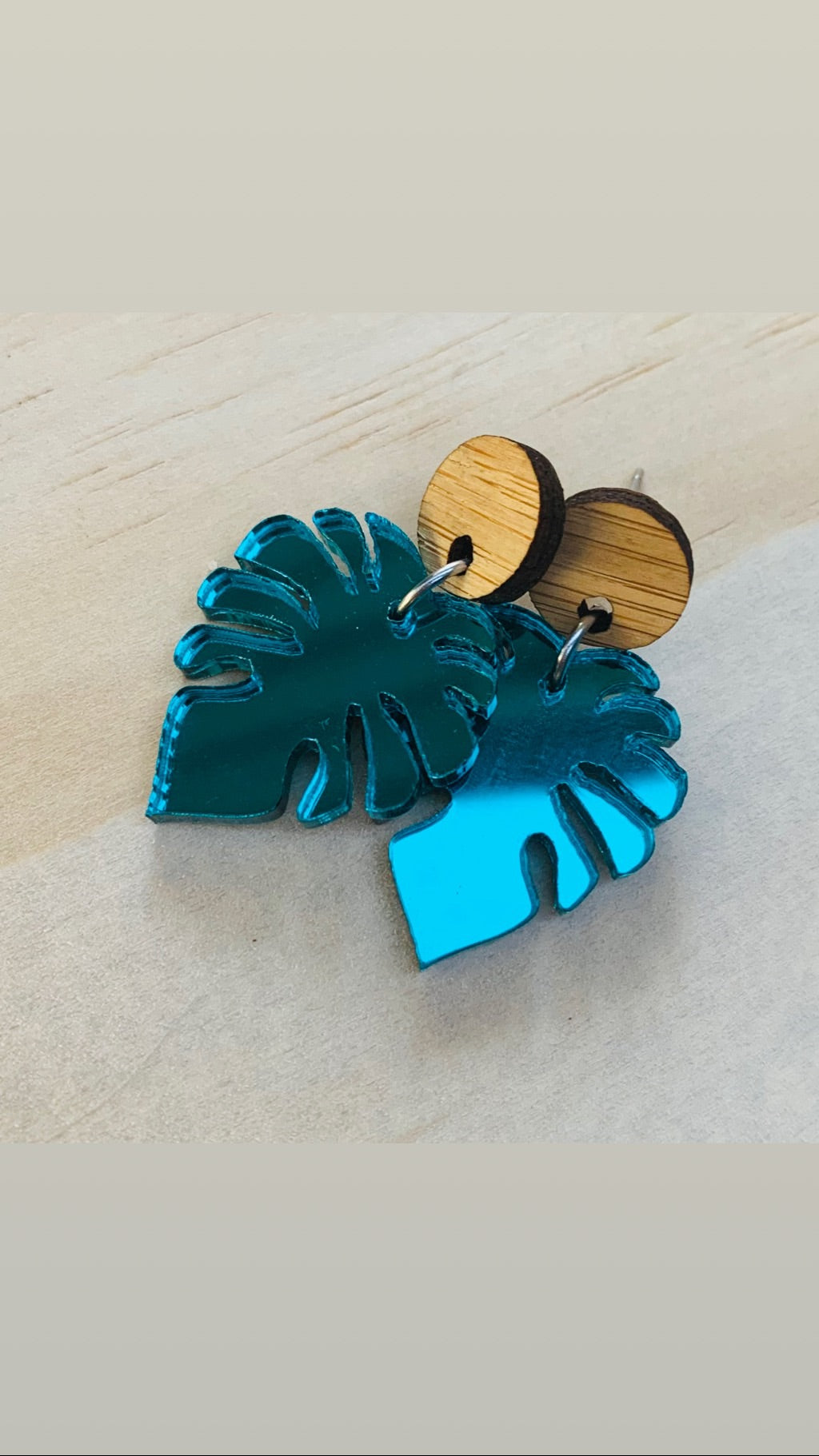 Sizing: 11mm bamboo circle and 21mm drop in the leaf.